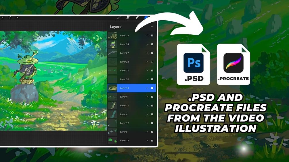 With this set of environment brushes for Procreate, Photoshop, Art Studio Pro and Clip Studio Paint, Infinite Painter, Krita and Affinity, you can watch a totally free video process in YouTube in which I use most of them, showing you the direct techniques and where to use each one.