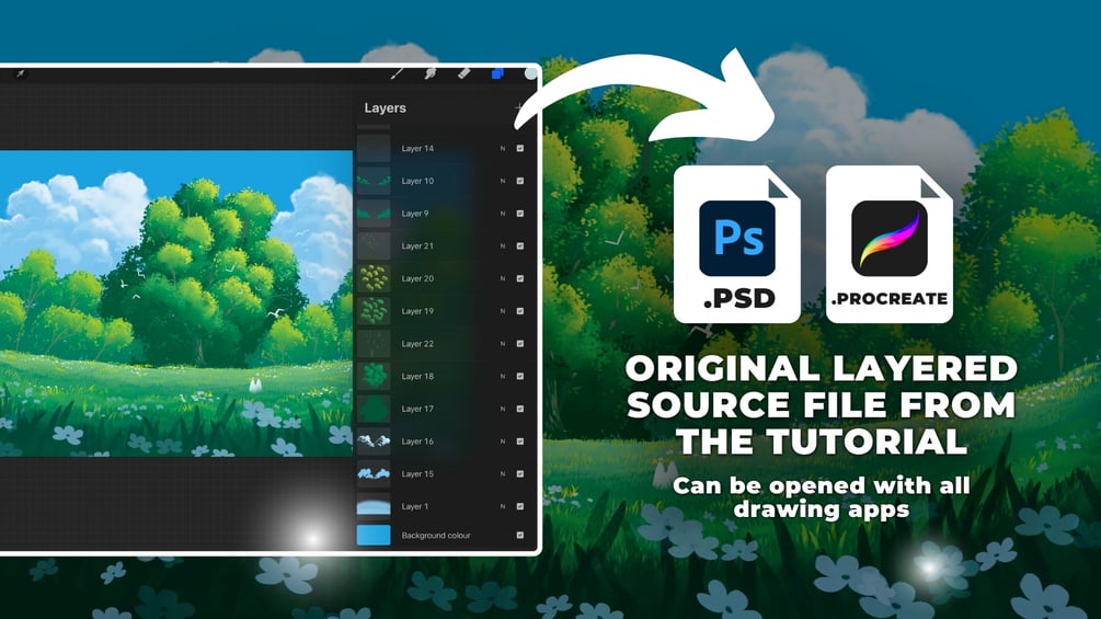 With this anime and ghibli inspired brush set, you will get a step-by-step video tutorial, in which I will show you the best use for each brush in a simple way, drawing a beautiful and fresh anime scene, with a lot of details, greenery and magical vibes.